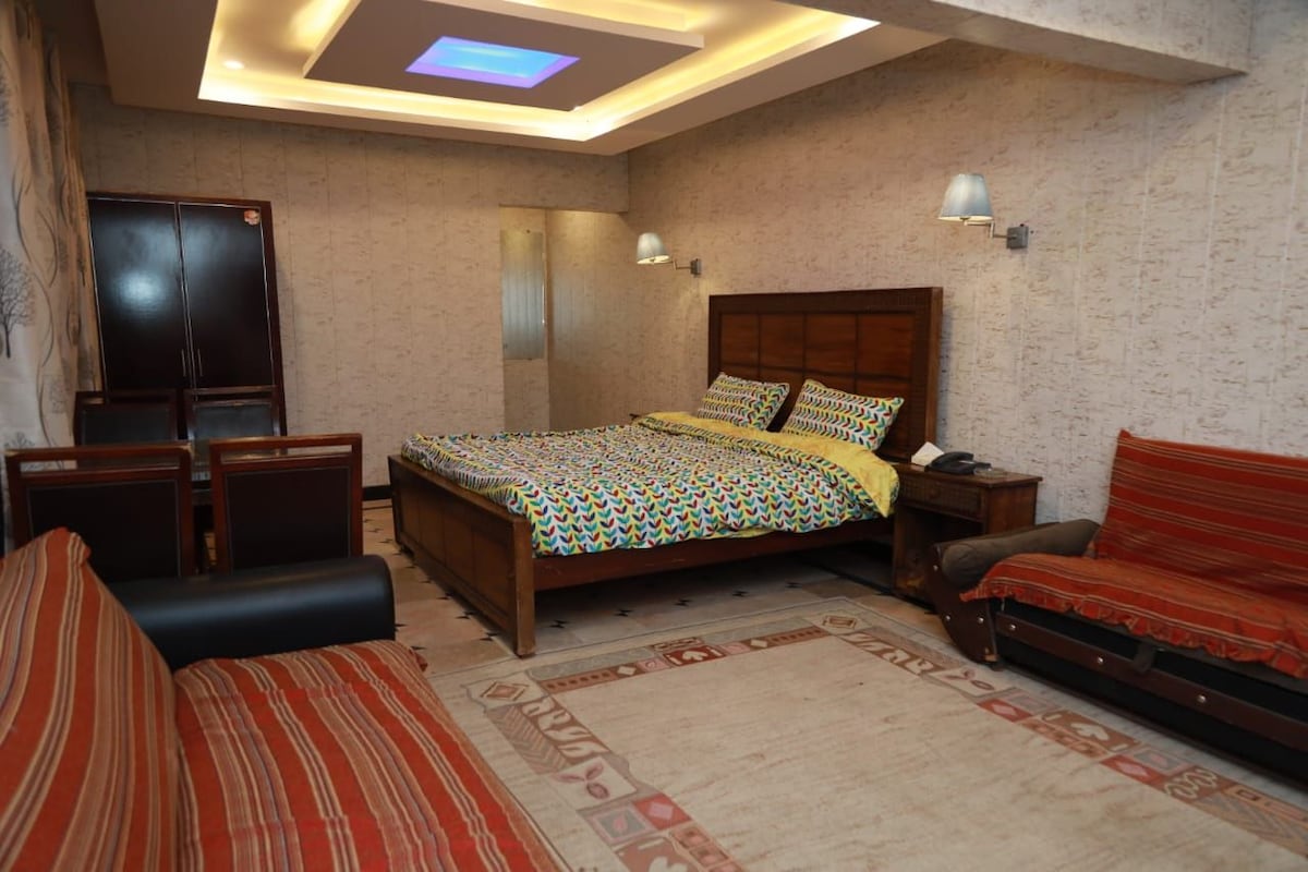 Welcome to SunsetBNB, your luxurious home away from home in DHA phase 2. Our 3-star facilities include bed & breakfast, free secure parking, and 24x7 butler service. We also offer room service, high-speed internet, cleaning services, and many more. Our guest rooms have a common refrigerator, Smart TV, and laundry services. Enjoy our stylish lobby and dining area, or rent a car to explore the area. Highly recommended for families. Book with us today and relax! ID proof is compulsory