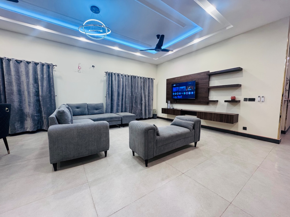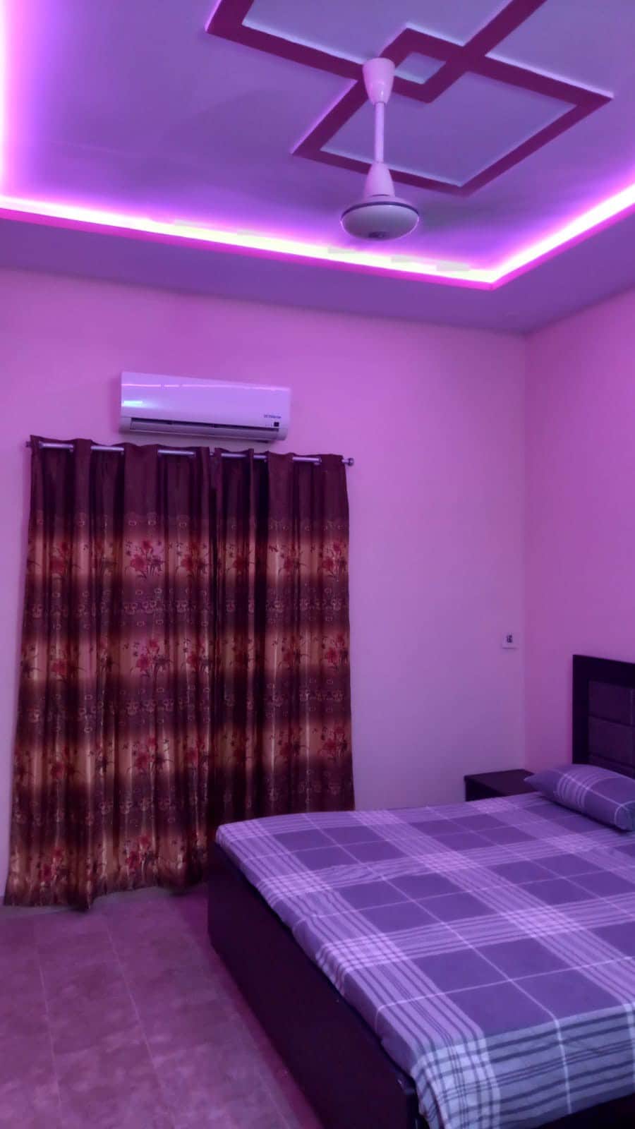 Welcome to our elegant and well-maintained banglow. This listing is for a private portion of the house, thoughtfully designed for family comfort. The portion is located on the First floor and offers three furnished bedrooms, each with an attached private washroom, along with a fully equipped kitchen and a comfortable lounge, dinning. The space is professionally cleaned and includes AC, TV, high-speed Wi-Fi, fresh linens, and essential amenities. Secure, peaceful, and exclusively for families.