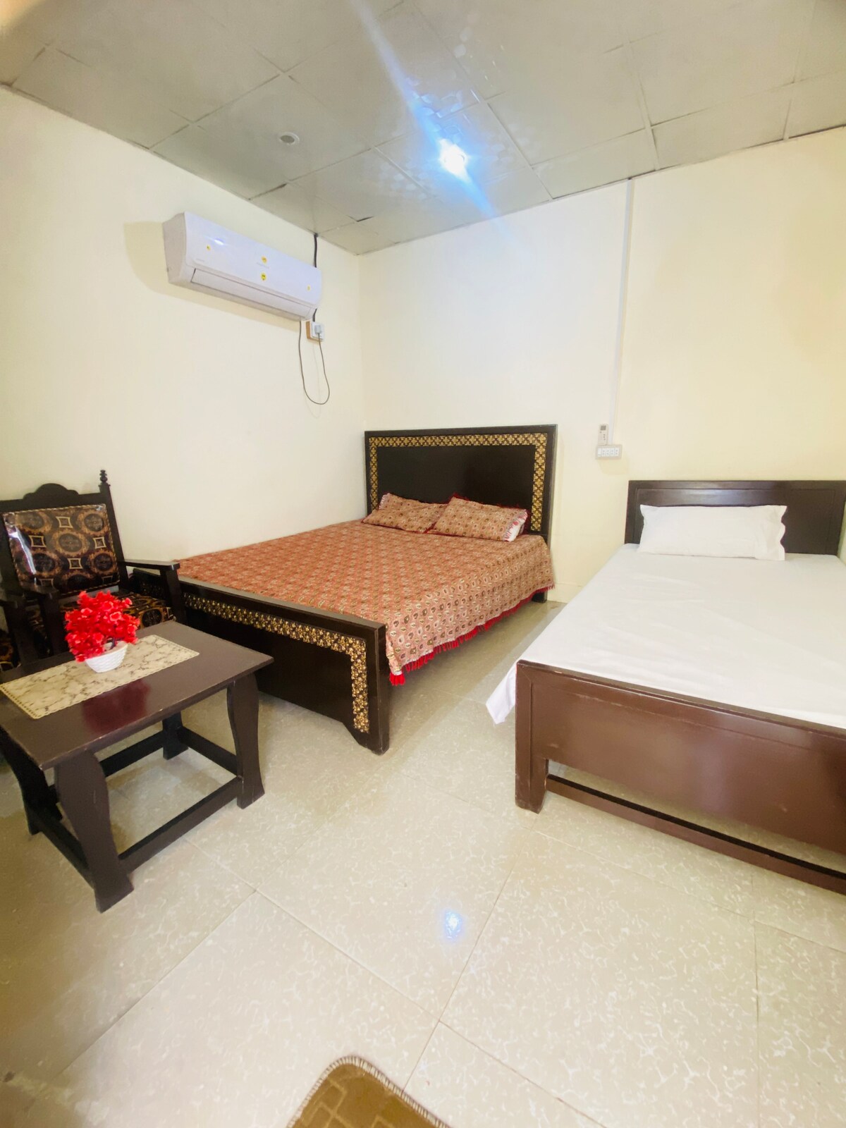 Only families and group of females or group of males can get intouch.we don’t accomodate unmarried couples. 2 minute drive to emporium mall,cinemas and many restaurants. Easily accessible from ring road and nearest to motorway from other cities. Extra facilities: dinning table,extra mattress, kitchen utensils,kettle,iron,stove,2 air conditioner, extra bathroom, parking garage etc