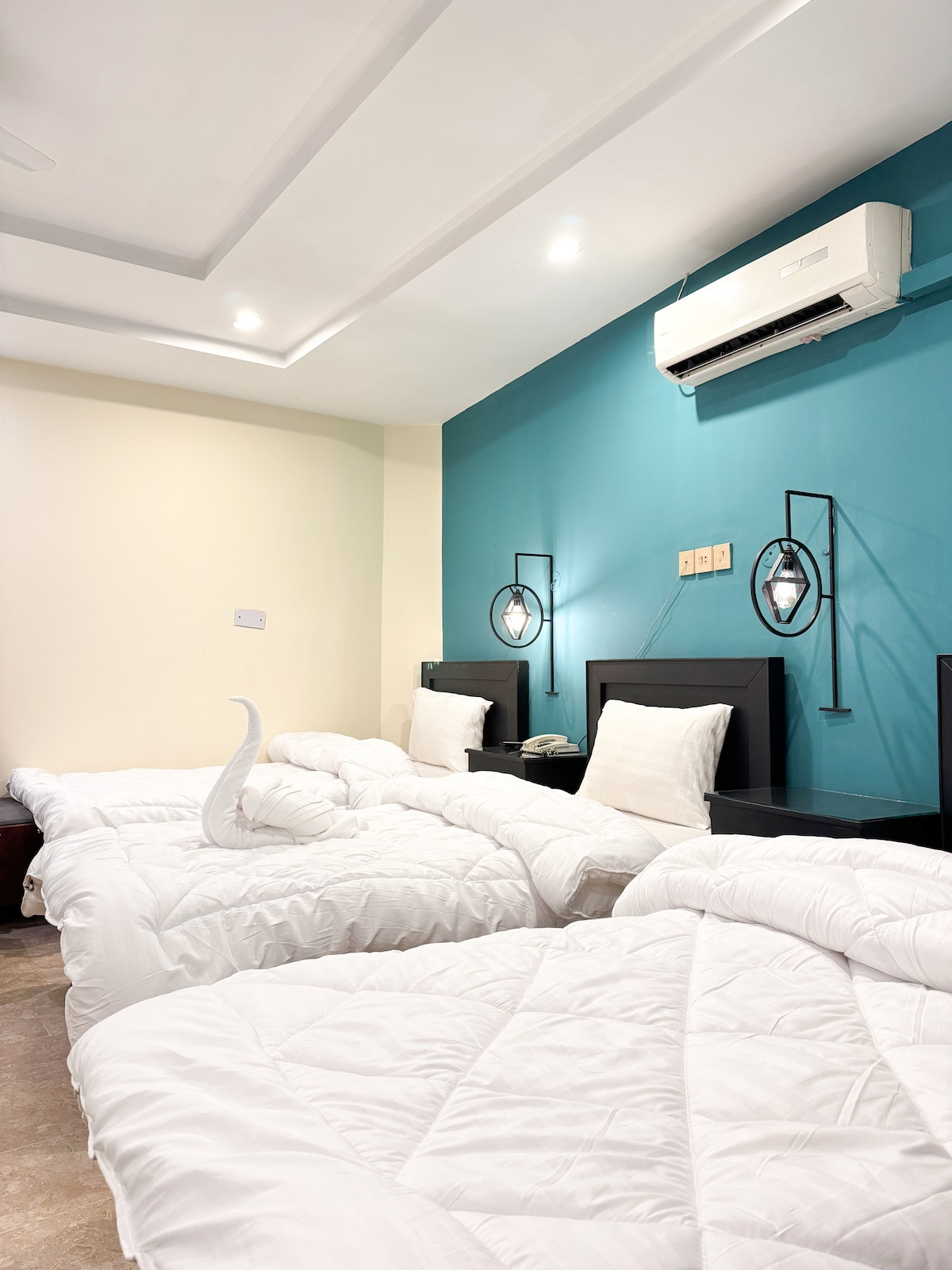 Welcome to the luxury suite, located in G7 Markaz, Islamabad. Our elegantly designed suite offers modern furnishings, a spacious layout, and a private attached bathroom with hot and cold water. Enjoy a flat-screen TV for entertainment and complimentary high-speed Wi-Fi. Start your day with a delicious breakfast for two, included with your stay. 24/7 reception. Conveniently situated near Centaurus Mall and Faisal Mosque, our hotel guarantees an unforgettable experience.