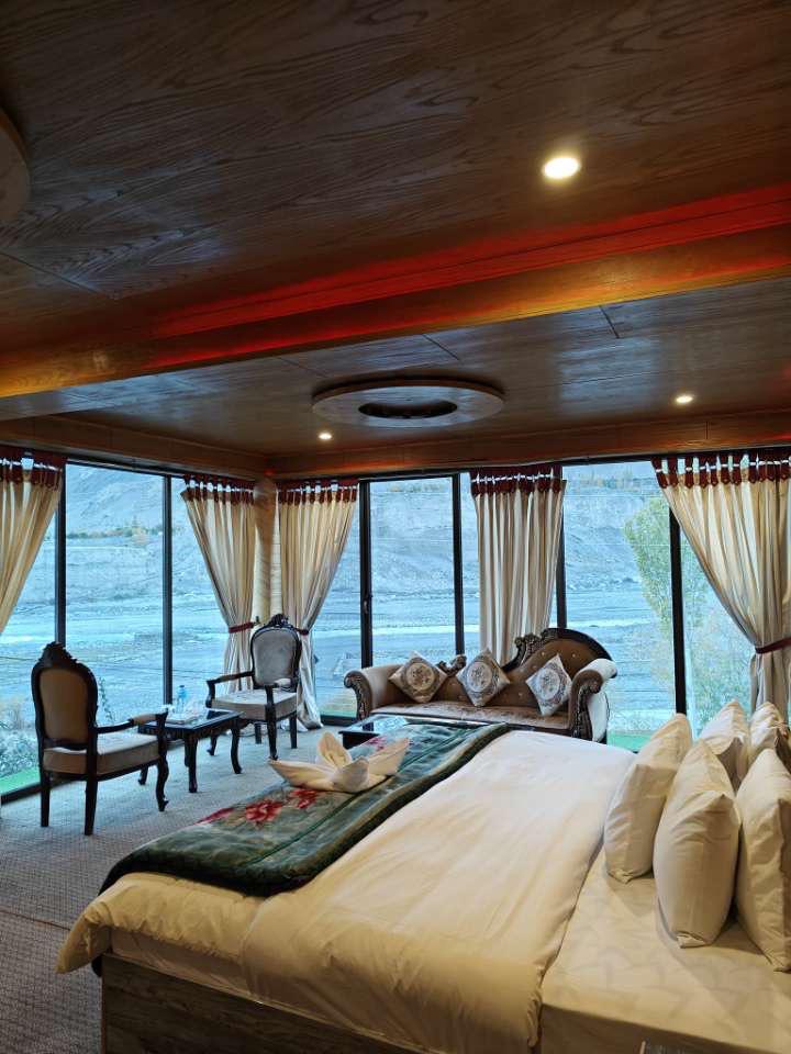 This stylish place sets the stage for a memorable trip. A boutique Hotel amidst mountains with breathtaking views of sarfaranga desert, River Indus and Karakoram Range on one side and Himalayan range on the other. The facility offers 7 x BRANGSA (Independant large Rooms) to give experience of Baltistan village with high-end amenities and comfort. 20KM from Skardu Airport, resort is easily accessible by car or a jeep. Hike track to famous Marsur Rock is a few 100 meters from our location.