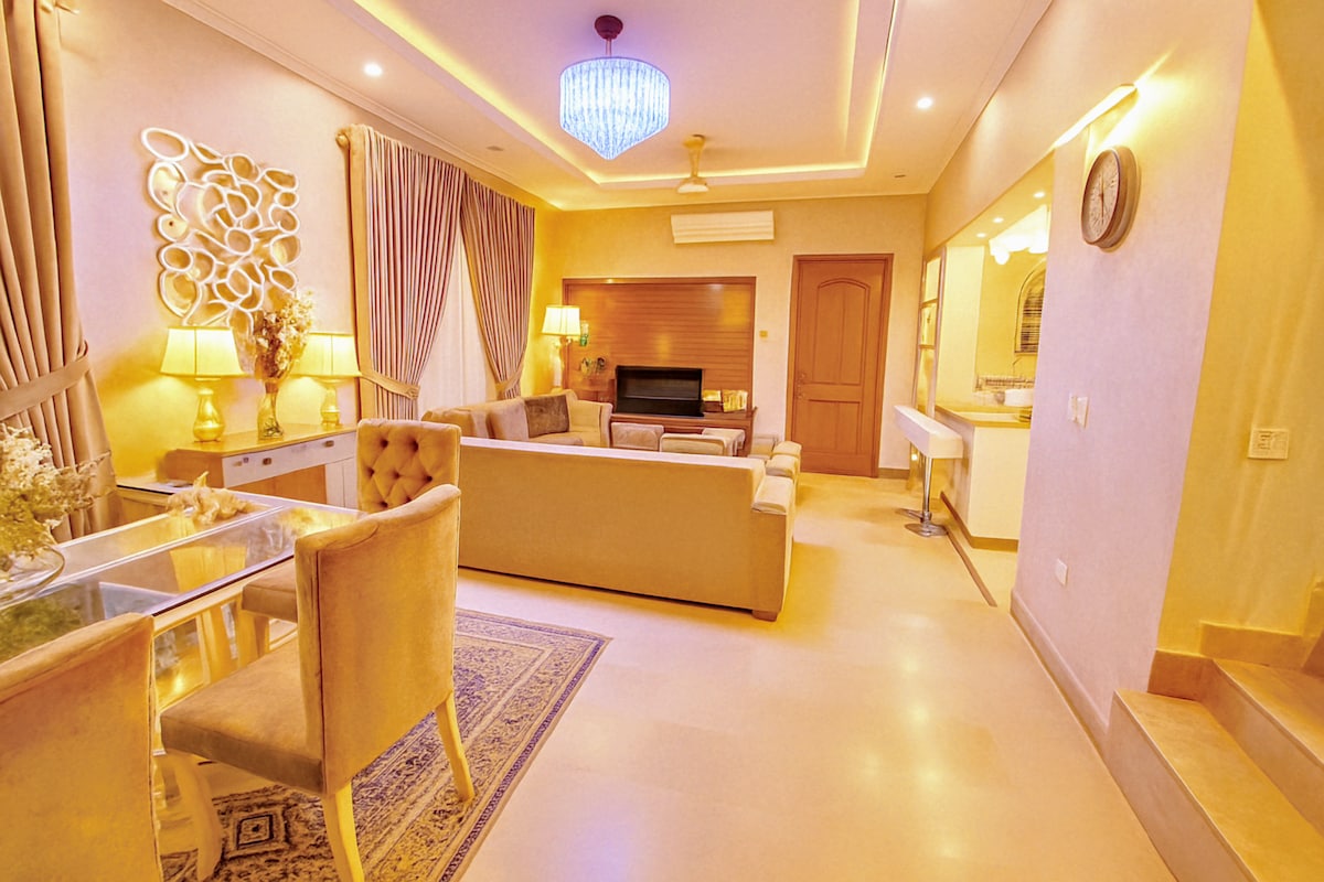 Welcome to our stylish two-bedroom suites in DHA 5 Islamabad. Enjoy the convenience of a quick commute and relax in a space featuring lovely decor and a fully-equipped home theater. Ideal for travelers seeking comfort and entertainment, this cozy retreat offers modern amenities in a prime location. It is a complete separate portion with it own separate entry and parking, family friendly, therefore very secure and peaceful. Parties & loud music is not allowed. Unmarried couples not allowed.