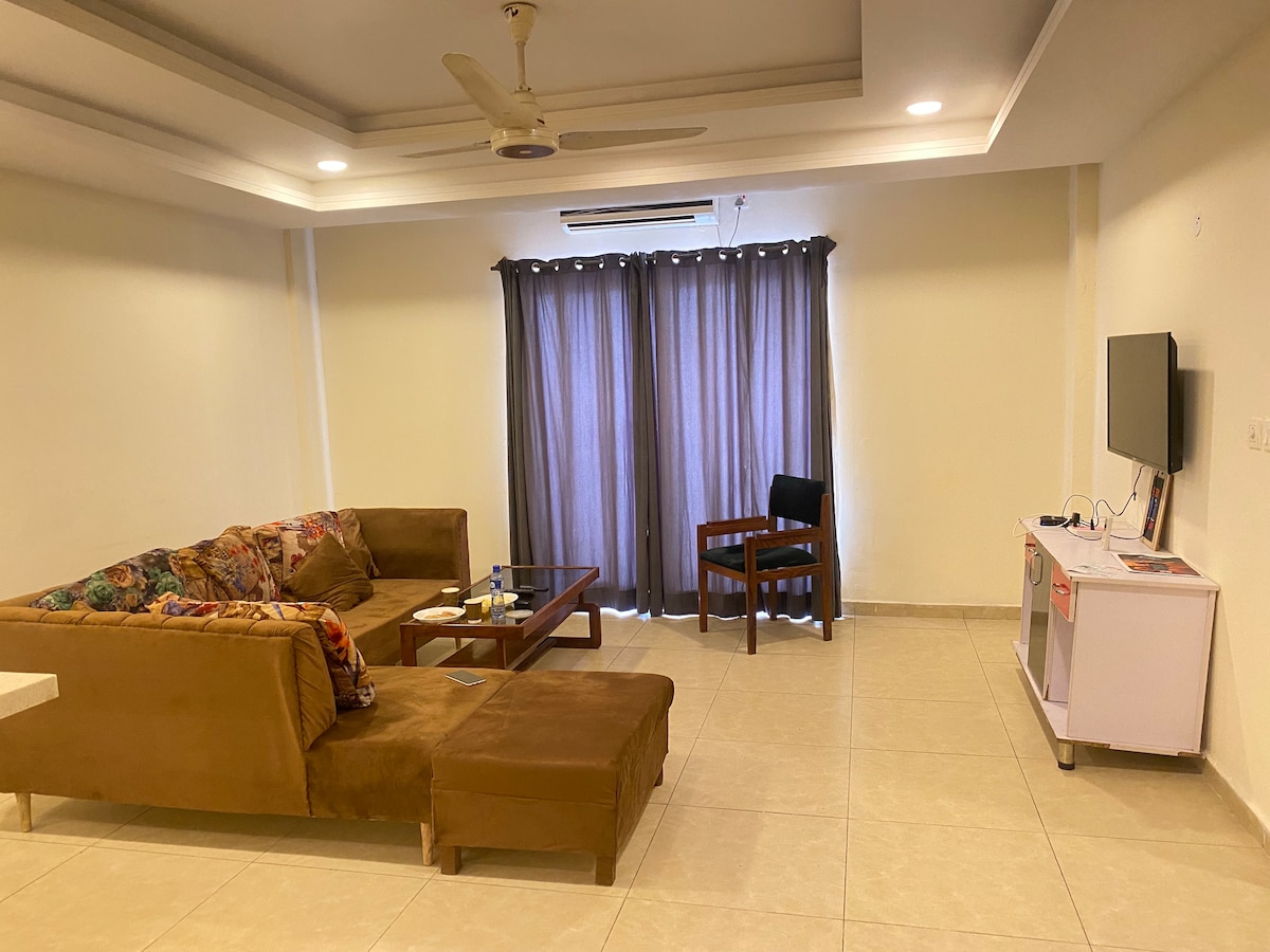 Wake up in this bright apartment located right in the heart of Islamabad. It’s a well-equipped two bed apartment with a drawing and a dinning room. Wonderful coffee shops and restaurants close by. has everything to make you feel at home – WiFi, Netflix, a king size& a queen size bed, well equipped kitchen and tableware are provided by the host. Bathrooms stocked with luxury shampoos, bath products and more! We know how important it is to feel comfortable & relaxed after a busy day.