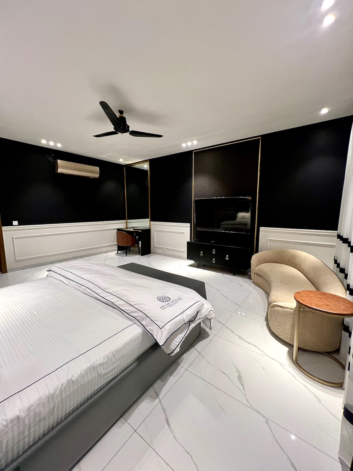 Your Luxurious Family Getaway: 3 bedroom Villa in Bahria Town Imagine waking up to the peaceful sounds of nature and the breathtaking views of the Eiffel Tower and dancing fountain from your private balcony. Our luxurious 3-bedroom villa offers the perfect blend of comfort and convenience. Inside, you'll find comfortable bedrooms with ACs, a modern kitchen, and a spacious living area . Book now for a premium family stay. CNIC/Passport mandatory for check-in