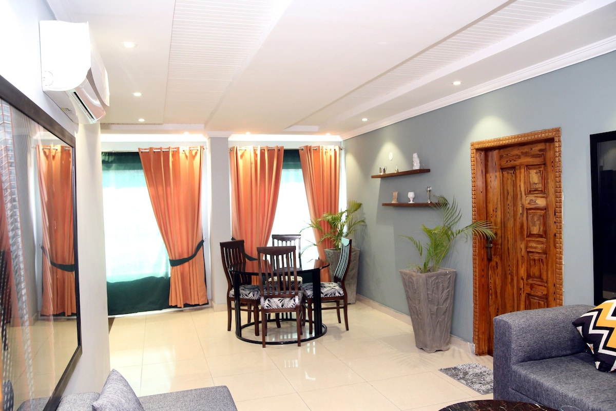 Central located place to live with wonderful experience of Promised quality service. Here are facility for Outdoor dinning, Coffee Bar,BBQ, Departmental store, Clothing Brands, Play land for kids, Safe parking, Trained security staff & Seprate lift. Best suitable for family vacation, Business trip and official meetings. Courier service, car service station and fuel station is at the next door step. We also offer our services to make your events special. Book your Special day with us too.