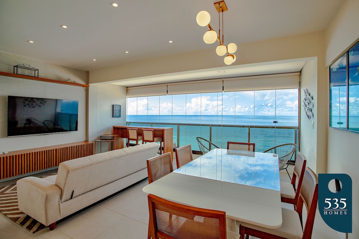 Accommodates 2 guests. Ocean view, in the best location for Carnival, with an outstanding view of the entire Oceanic Avenue all the way to Barra Lighthouse. Modern building featuring a swimming pool, gym, Seven Wonders Restaurant on the ground floor serving a delicious and highly sought-after breakfast (paid separately), mini-market, 24-hour front desk, and stunning architecture. Staying in this unit grants free access to the Blue Praia Bar, one of the best beach clubs in Salvador.