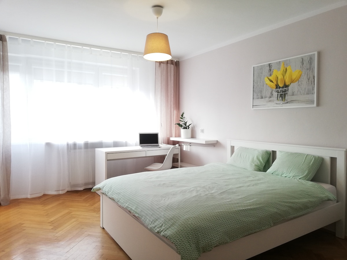 Modern building in the very center of Warsaw. Bus stops, trams, underground, train station, Palace of Culture, malls, cinemas, theatres, restaurants, and parks are just around the corner. The flat has been redecorated. There are new, modern furnitures and double-bad for your comfort. Light pastel colours and lovely drawings on the walls make it very pleasant place to stay for a weekend or a business trip. Fully equipped with whatever you need to feel like home while on your journey.
