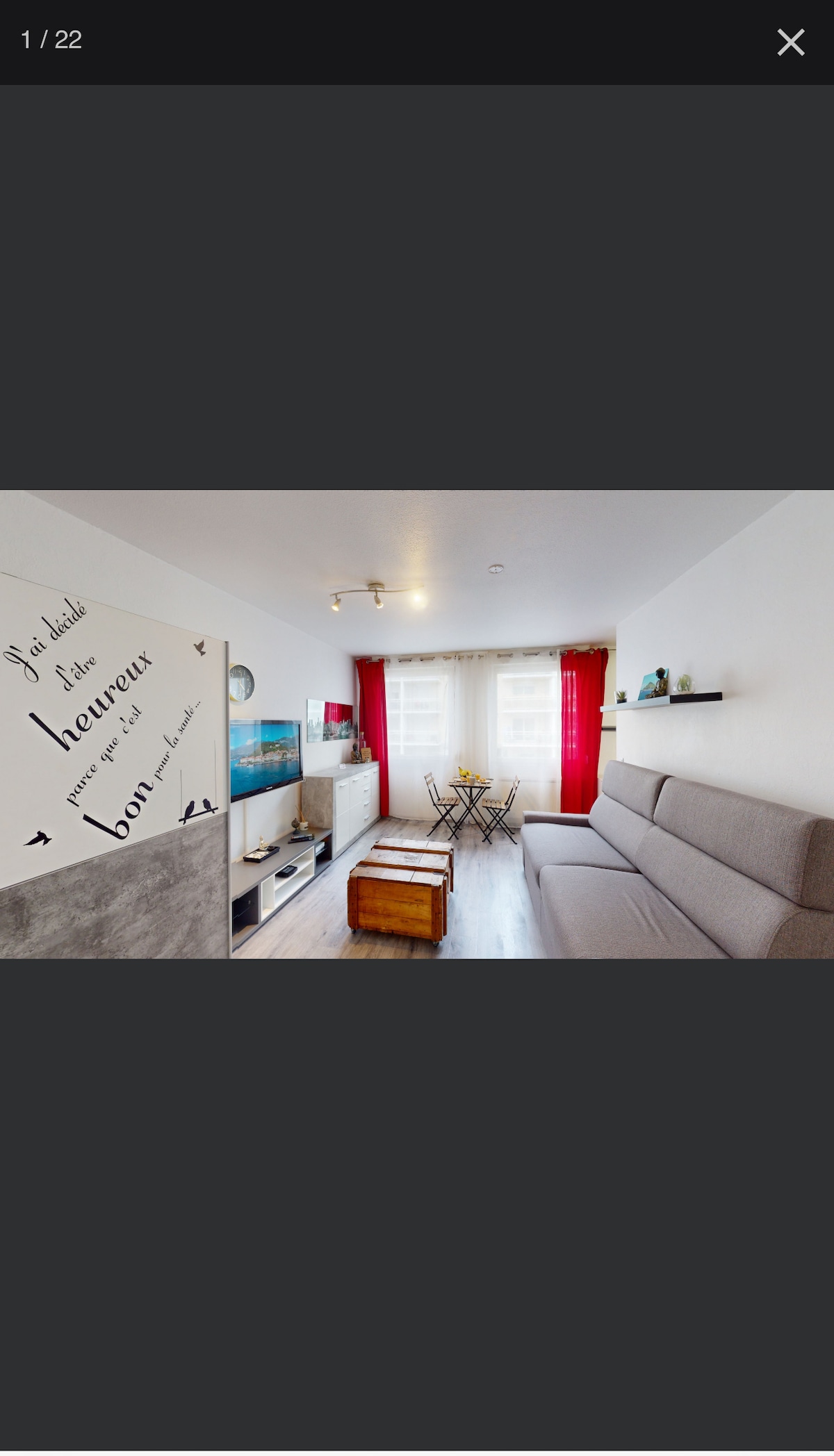 studio de standing idéalement situé d'une surface de 27 m2 . Equipé d'une baignoire balnéo d'angle 2 places et d’un lit king size d'une TV 50' et d'internet avec la fibre. Il dispose d'une salle d'eau avec douche à l'italienne comprenant un lave linge séchant. il est possible d’organiser la pièce pour avoir des lits séparés sur demande