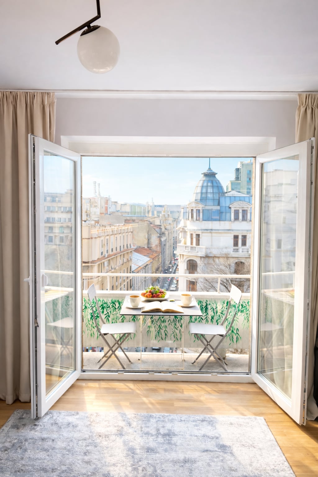 This exquisite 2 Bedroom apartment is located in the heart of Bucharest at the border between the vivid city and the Old Town. Location wise it doesn't get any better than this. From the balcony you have an amazing view over Calea Victoriei Boulevard and the old town. The place is easily accessible by public transport (bus & metro). This beautiful flat was fully refurbished in August 2020 with high standard materials and has all possible amenities available for a perfect stay.
