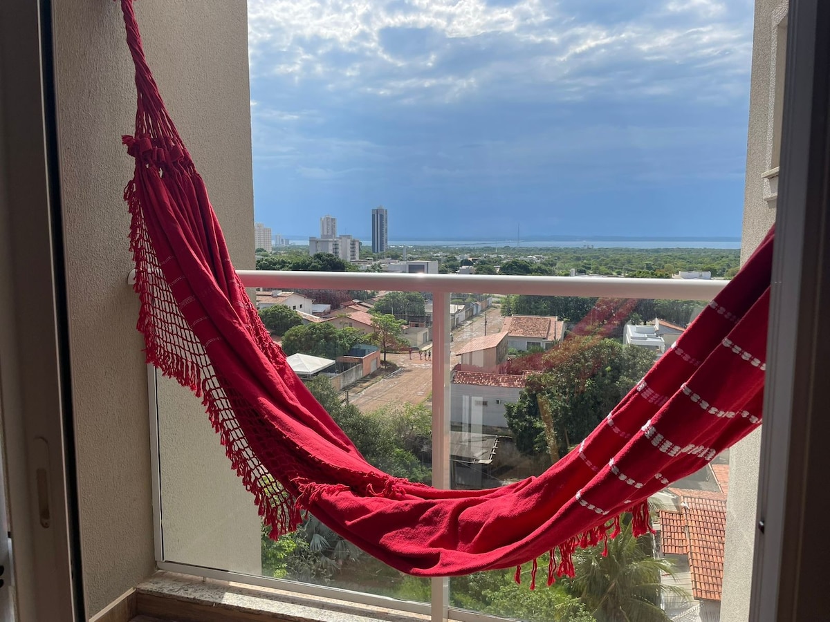 Apartamento aconchegante e bem decorado, perfeito para trabalho ou turismo, em família ou sozinho. Equipado com ar-condicionado em todos os cômodos, iluminado, fica no último andar e oferece uma vista incrível do Lago de Palmas com pôr do sol maravilhoso. Condomínio silencioso e prédio com elevador. Localização excelente: a 10 minutos a pé da Praça dos Girassóis, próximo ao Parque dos Povos Indígenas, e a apenas 5 minutos de carro do Capim Dourado Shopping e da UFT.