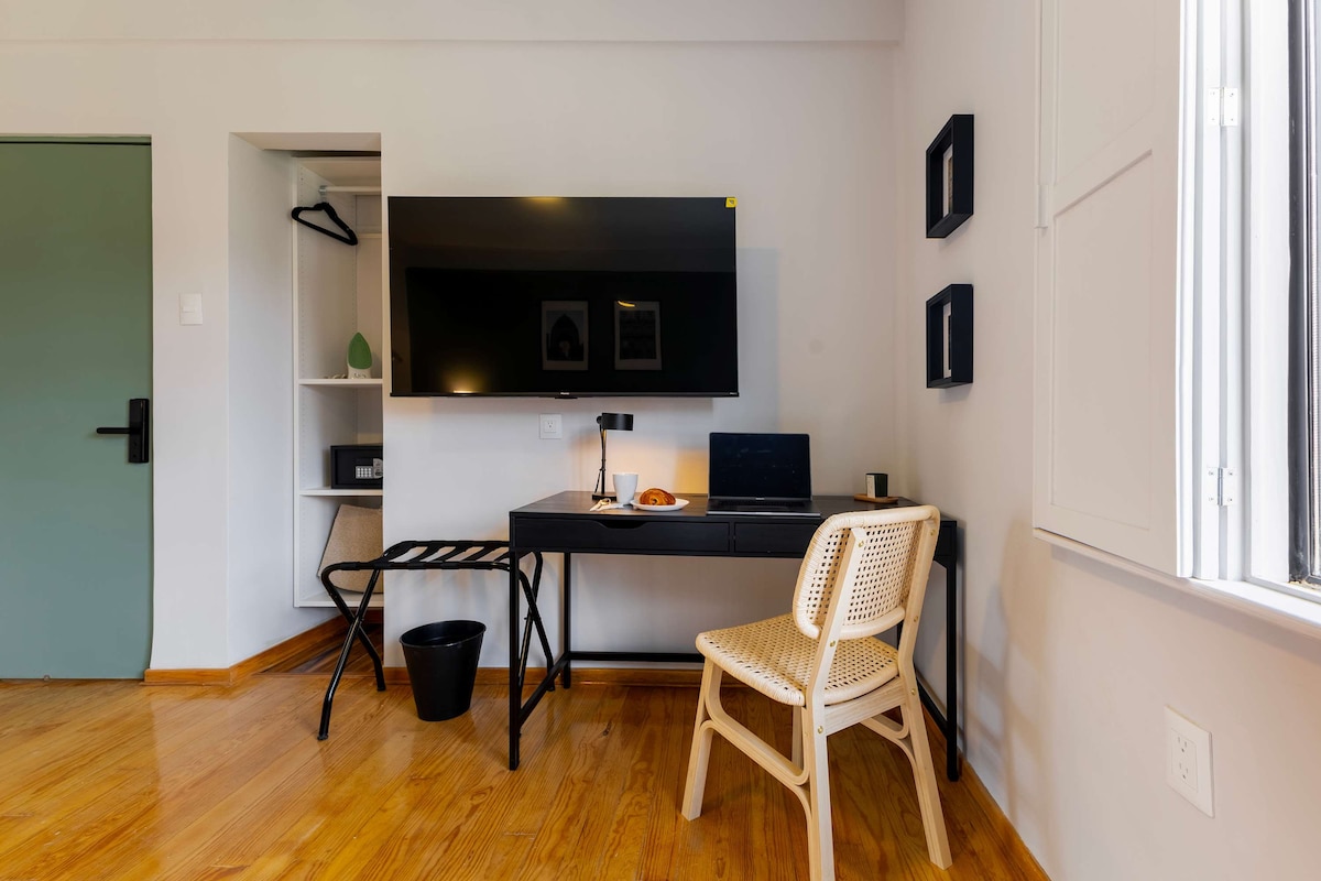 Experience comfort, convenience, and culture from the perfect base in Mexico City. Our fully equipped studios offer everything you need for a productive and restful stay including a dedicated work desk, private bathroom, TV and soundproof windows whether you're traveling for business or leisure, you'll feel right at home. Surrounded by museums, parks, restaurants, and cultural attractions, our property puts you in the middle of it all.