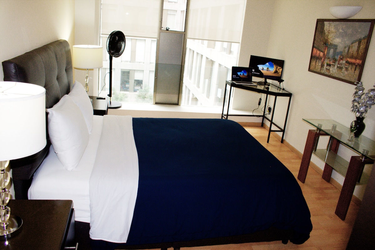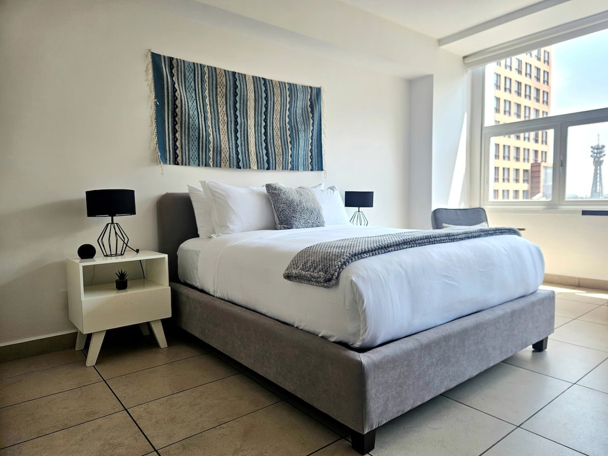 Este espacio ubicado en una de las principales avenidas del país, cerca de Av Reforma y el Centro Histórico, es perfecta para viajes de turismo o negocios. Te fascinarás con su espectacular vista panorámica de la alameda central y el palacio de Bellas Artes. Además, cuenta con todo lo necesario para que tu estancia sea excepcional: cama king size, cocina espaciosa y totalmente equipada, área de trabajo, wifi de alta velocidad y una cálida decoración para que te sientan como en casa(Checkin 4pm)