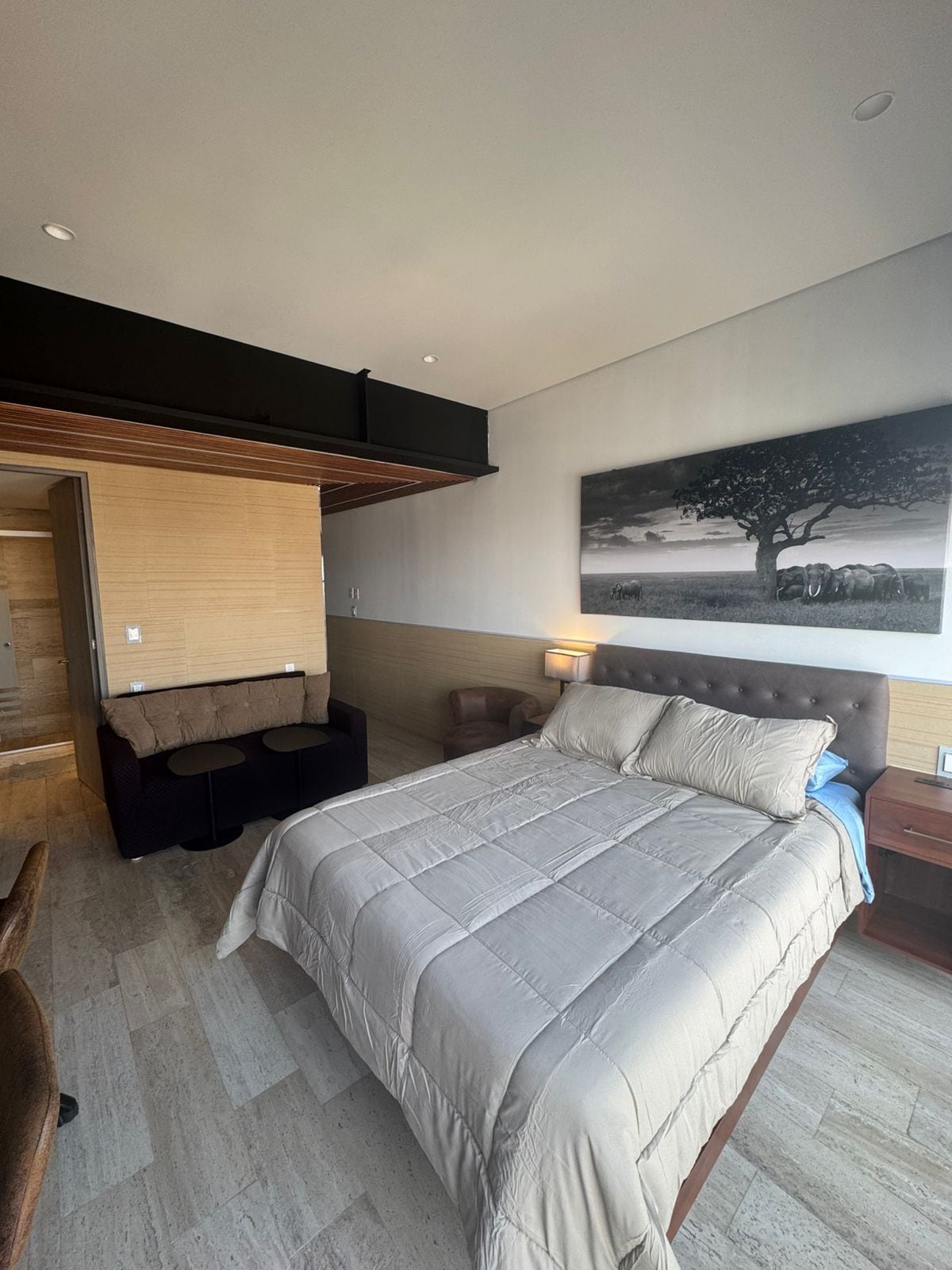 Nuestra Suite cuenta con 2 camas matrimoniales, baño privado, cocina equipada dentro de una distribución armoniosa y confortable. En una ubicación excepcional a una pequeña cuadra del zócalo de la Ciudad de México, en zona de Boutiques (a una cuadra el Palacio de Hierro la primera y mas sofisticada tienda departamental en México abrió sus puertas en 1891) y joyerías. En un día puedes visitar la Catedral, Palacio Nacional, Museos, Restaurantes como el Cardenal, Palacio de Bellas Artes,