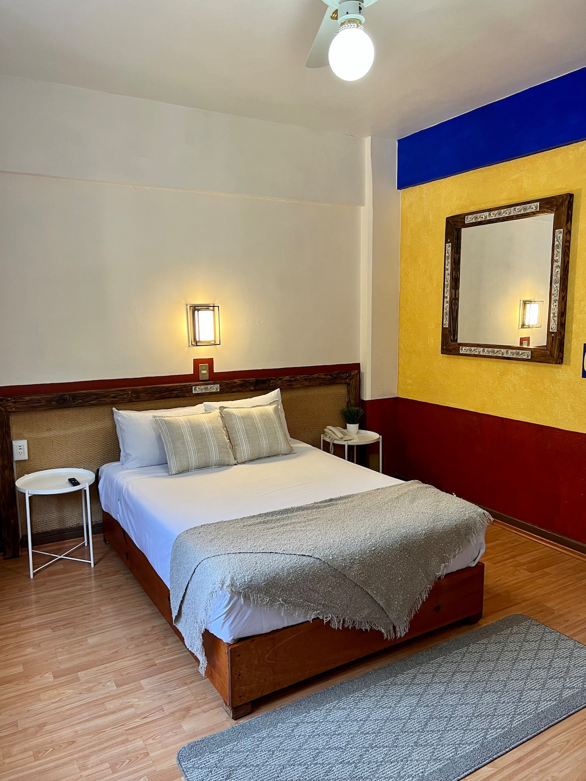 Stay in the heart of Santa María la Ribera, one of Mexico City’s most authentic and laid-back neighborhoods. Our cozy room is part of a renovated, 1926s Mexican townhouse— central to everything, yet super tranquil. You’ll have your own comfy space plus access to the living room, shared kitchen, a sunny rooftop, and a dedicated workspace. Full-sized washer/dryer available. This room is an interior room next to the water fountain.