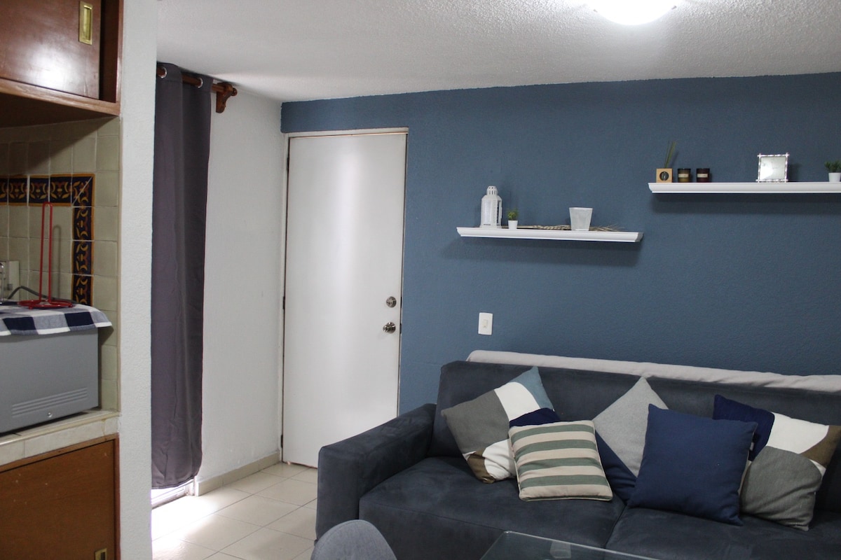 Espacioso y cálido loft, con todo lo necesario para una estancia cómoda, a 5 min de estadio GNP, a 10 min de el AICM, a 16 min de Terminal TAPO, a 20 min de el Centro Histórico Cdmx, plazas, mercado cercanos. Cuenta con 2 habitaciones cama matrimonial c/u, 1 baño completo, shampoo, jabón de baño toallas,cocineta , horno, refrigerador, utensilios etc, wifi, comedor, sala y pequeña terraza, se encuentra en un 1er nivel, en calle Cerrada ( abre solo con control) Lugar estacionamiento en calle.