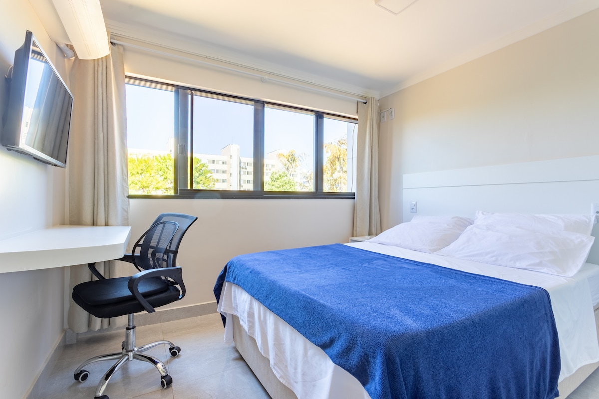 Espaço confortável no Noroeste -área nobre, próximo ao Boulevard Shopping, supermercados, bares, farmácias, lavanderias e padarias. Com móveis finamente planejados em todos os ambientes, o espaço conta com televisões, ar-condicionados, utilidades de cozinha, forno, fogão, geladeira, microondas, sanduicheira, cafeteira, secador de cabelos, toalheiro elétrico, mesa de trabalho, cama box de casal e roupa de cama e banho higienizados. Inclui estacionamento privativo e porta com fechadura automática.