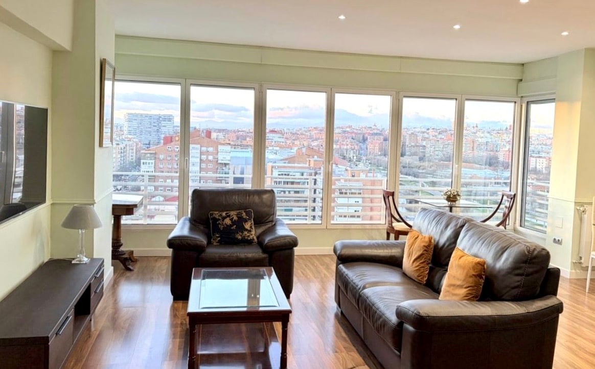 Exclusiva vivienda de temporada en uno de los edificios más emblemáticos de Madrid. Para clientes que visitan Madrid como destino cultural, profesional o de trabajo. Está lujosamente amueblada, consta de dos habitaciones con amplias camas y armarios empotrados, cocina y dos baños completos y un fantástico salón con acceso a una terraza que por su gran altura goza de unas impresionantes vistas.