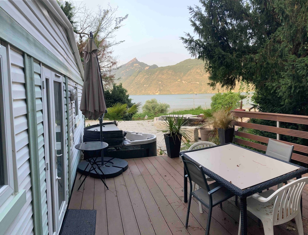Logement indépendant sans vis a vis (env. 20m²+ 10m² terrasse couverte) en rez-de-jardin d'un chalet habité au bord du lac du Bourget: cuisine séparée, salle de bains, pièce à vivre et terrasse couverte avec vue imprenable sur le lac. Température fraiche dans le logement lors des grosses chaleurs. Accès direct à la plage de Brison-St Innocent - 200 m à pied et nombreuses activités à proximité été comme hiver. Linge de maison non fournis - Présence d'animaux (2 chats) NON ADAPTE AUX ENFANTS