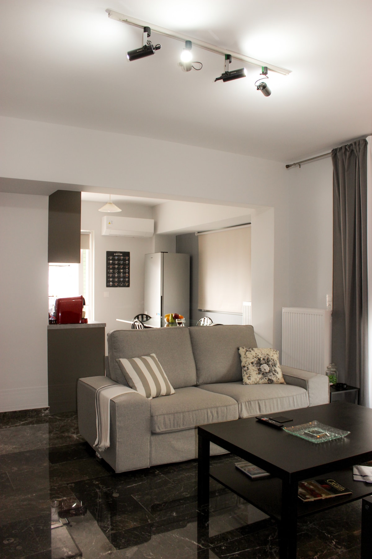 ПерApartment 47 sq.m. with one bedroom, living room, hall and separate kitchen. It can easily accommodate 3 guests - there is a double bed and a sofa. All amenities are available for you - Wifi, washing machine, smart TV. Great location - 15 minutes walk from the beach. Nearby you will find many restaurants and cafes for every taste. The center of Athens is very easy to reach by public transport (15 minutes by bus or tram).