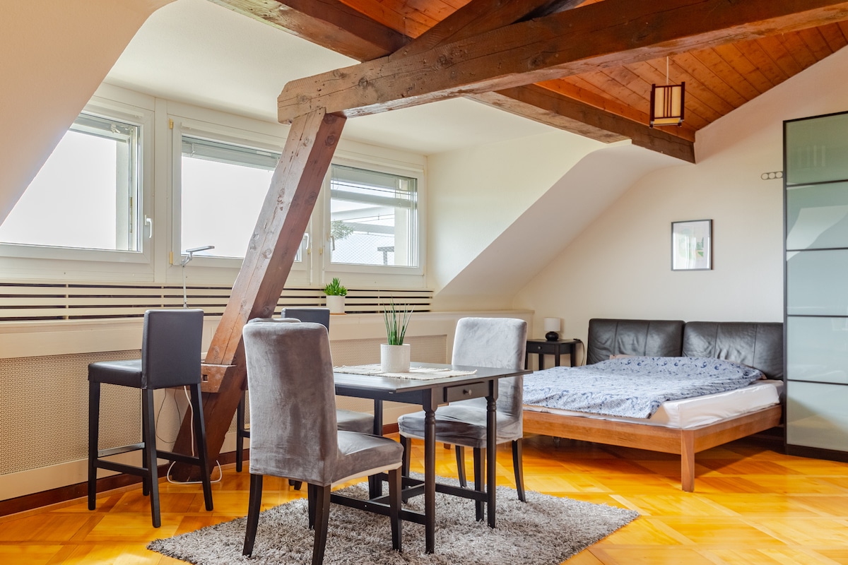 Very Central sunny big loft with an equiped kitchen, a balcony and a nice view 10 minutes walking from United Nations (5 by tramway). 1 minute walking distance from main train station Cornavin. 5 minutes walking distance from the lake. 10 minutes walking distance from old town Big bed Very High speed Wifi ! Apple TV 4K Big screen 55 inchs smart TV Fully equiped Ideal for telework & homeworking No free parking. Nearest: "Parking place de Cornavin".