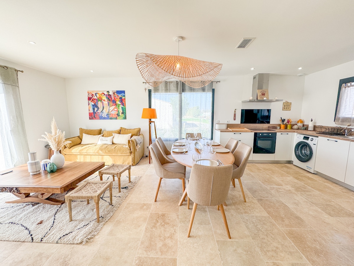 110m2, deux grandes chambres indépendantes avec salles de bains WC privatives, une chambre buanderie, cuisine, salon TV canapé convertible, salle de jeu/sport babyfoot... Piscine et extérieurs végétalisés sur +200m2 pour profiter des BBQ grill et terrasses ombragées. Proximité du réseau transports, idéal pour visiter Avignon, L’Isle sur la Sorgue et leurs festivités sans utiliser son véhicule.