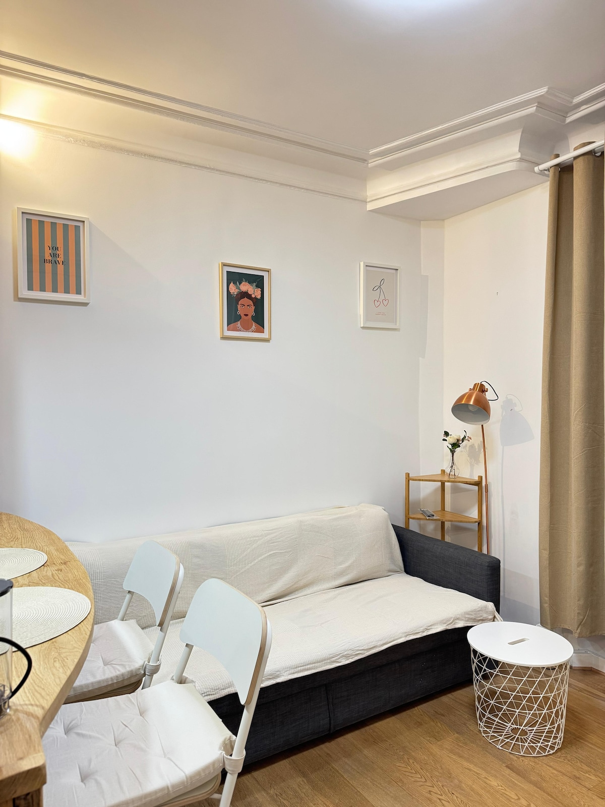 A cozy and calm shelter at Le Marais, 200m from Place de Vosges, in a 2021 renovated 1870's building with an authentic mood, original features, plus modern confort in a minimal deco. A 2nd floor by elevator giving to a quiet courtyard, it has a living room, open kitchen, bedroom and bathroom. High Speed Internet. Netflix. Walk to: Subway 3’~P.des Voges 3’ ~M.Picasso 8’~Seine's bank 13’ Pompidou's museum 18’ ~N.Dame 21’ ~C. S.Martin 23’ ~Pinault Collection 29’~Louvre 33’ S.Germain 35’