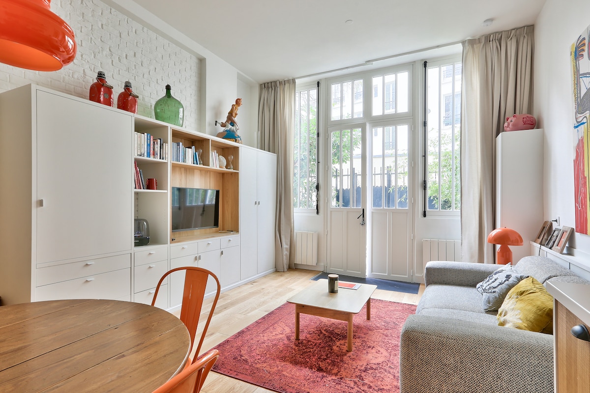 Grand studio sur cour situé dans le 9ème arrondissement, refait à neuf et décoré avec goût. Une fois passé le porche, vous arriverez sur une cour calme et ensoleillée. Très spacieux et fonctionnel, avec sa grande hauteur sous plafond, il peut accueillir 4 personnes. 1 chambre avec lit double sur la mezzanine, 1 canapé-lit pour 2 personnes. WIFI et TV à disposition. Il se trouve à 2 min du M° Poissonnière ou 5 min du M° Bonne Nouvelle.