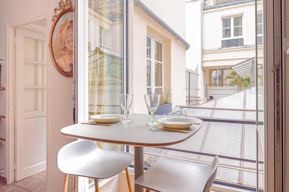 Appartement cosy, très calme de 60m2, situé au centre de Paris, près du métro Lepeletier, il offre tout le confort pour un séjour d'exception à Paris. En plein cœur de Paris, dans un quartier animé, l'OPERA, MONTMARTRE, THEATRES, LES GALERIES LAFAYETTE, LE PRINTEMPS, LA MADELEINE, LA PLACE DE LA CONCORDE, … Ce logement de charme est idéal pour des vacances en famille ou entre amis. Logement accueillant 4 personnes. À partir de la troisième personne, nous facturons 30€/nuit et par personne.