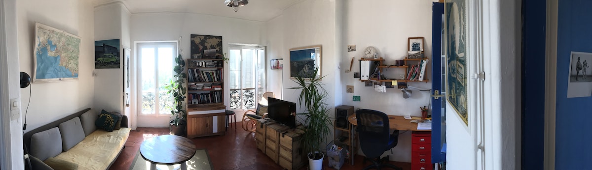 Bienvenue à Marseille.... Appartement de charme refait à neuf, très cosy, avec 2 chambres confortables. Petit immeuble tranquille dans un quartier très agréable et vivant ...à côté du Parc Longchamp et du tramway, métro, gare Saint Charles, tous commerces, restaurants et cafés. Cuisine entièrement équipée ouverte sur salon, machine à laver, véranda couvert ensoleillée. Climatisation. Vous trouverez de quoi faire du thé, du café, etc....linge de lit et de bain fourni.