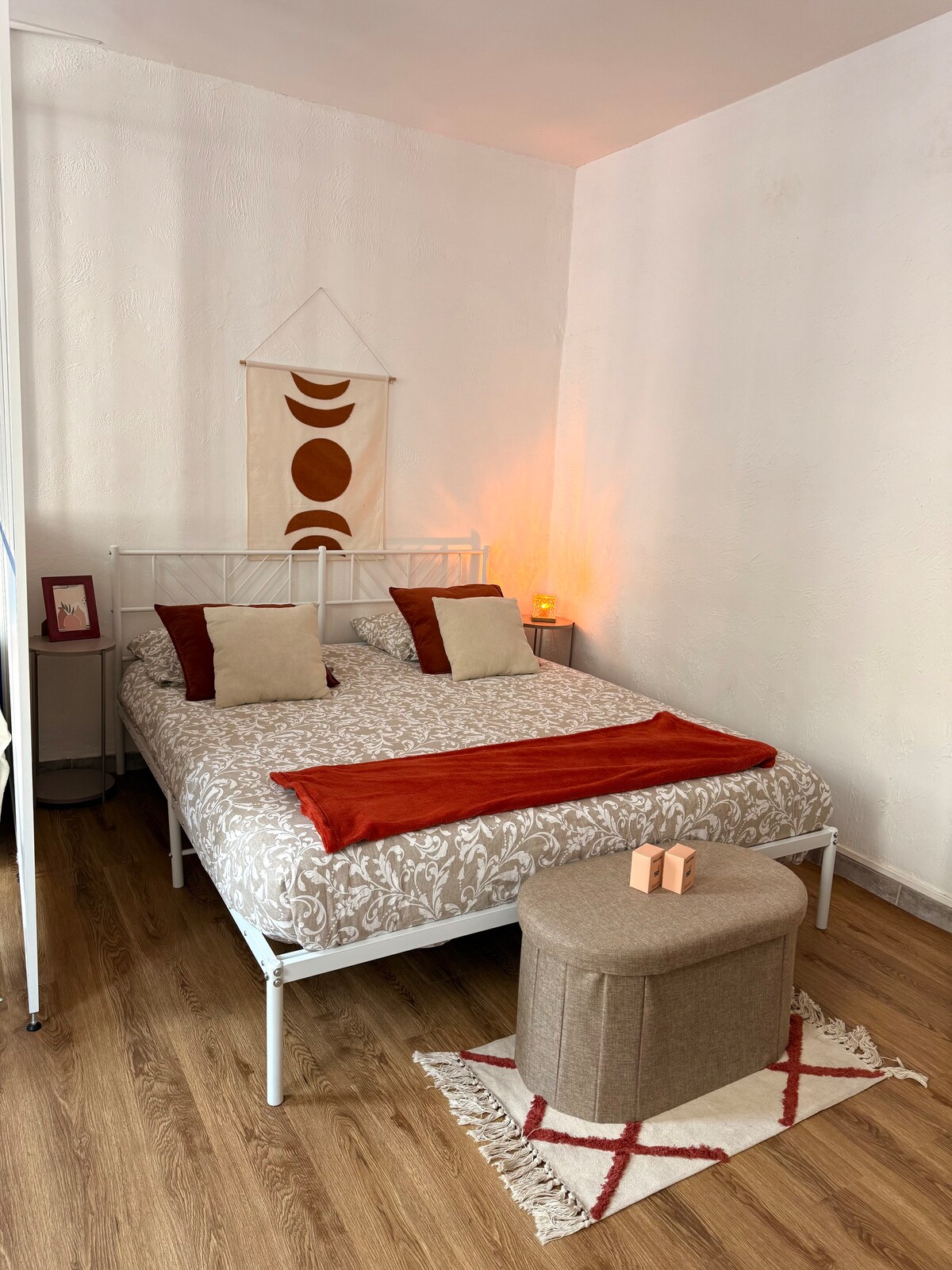 Our flat, designed by two architects from Marseille, consists on the first level of a very large loft-style living room with an open kitchen, a terrace overlooking very quiet gardens, a bedroom with a wardrobe, and a bathroom. The second level, with the second bedroom and its bathroom. The flat is located in Longchamp, a dynamic but quiet and central area! A parking space is available.