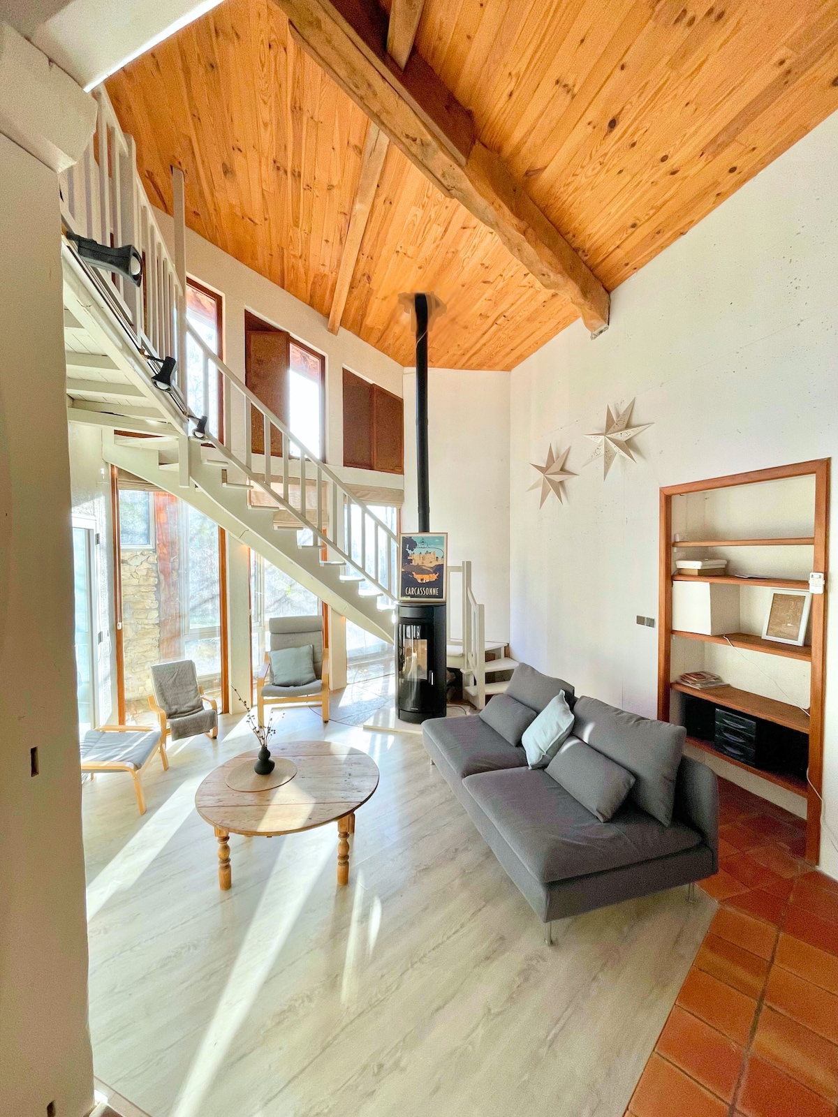 Découvrez notre charmante maison/loft vigneronne de 250m2, idéalement située à 10 min en voiture seulement de la célèbre cité de Carcassonne, son patrimoine exceptionnel et ses vignobles. Parfaitement adaptée pour les familles et les groupes d'amis, cette propriété spacieuse offre un cadre unique pour se détendre. Elle dispose d’une cuisine moderne, d’un salon unique en son genre, de 4 chambres, 2 salles d'eau, terrasse et jardin privatif. Une base parfaite pour un séjour mémorable en Occitanie!