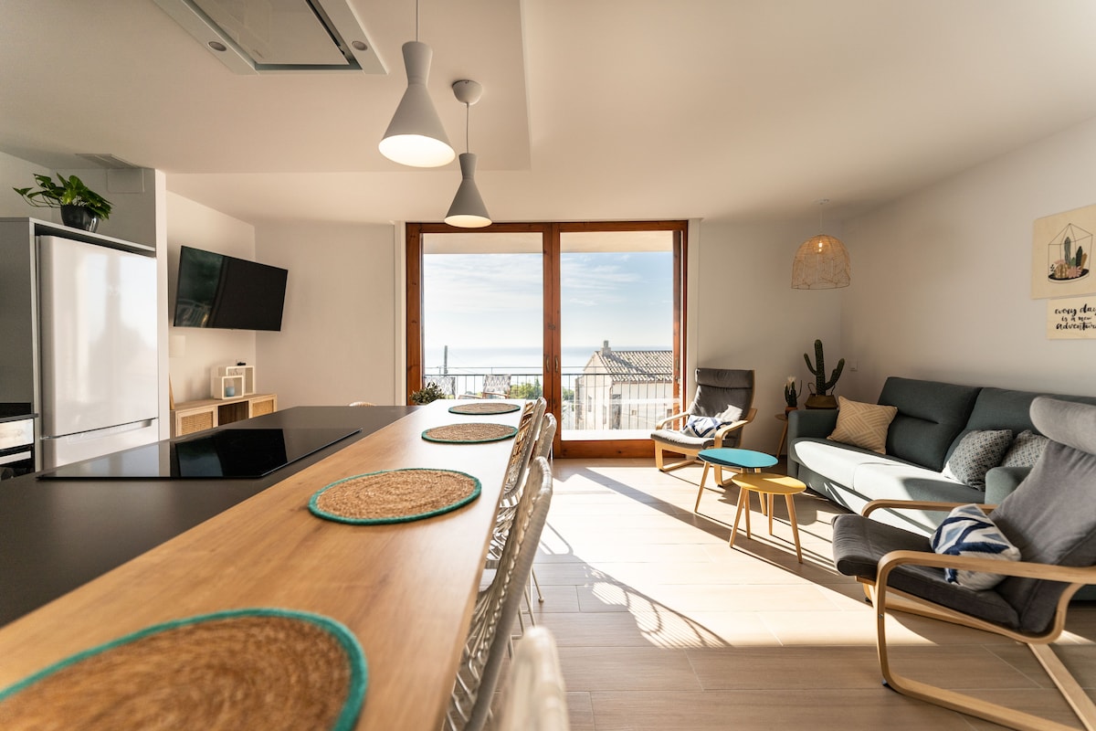The Little Balcony in Palamós is a totally renovated and furnished apartment in front of the sea, just behind the city center of Palamós with beautiful views of the beach and the old town of Palamós. All rooms are exterior and very light. We offer free and optional parking located about 550 meters from the building for a medium size car! 🚗