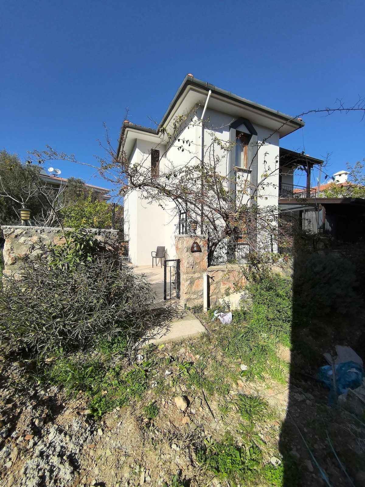 Akşamları serin balkonda sohbet keyfı ıstedıgınızı yapabileceğiniz bir bahçe sakin bir tatil merkezın gürültüsünden uzak ama cok kısa zamanda merkezınde olma ımkanı yürüme mesafesınde super marketler tamamen bagımsız bir ev