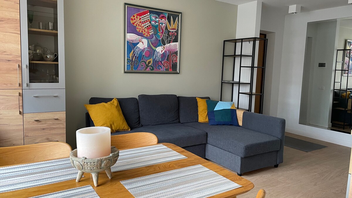 Welcome to this romantic 1BR 1BA gem in a serene area of Palanga. It promises a relaxing retreat, with direct forest access from your patio and steps away from the white sandy beach. Close to restaurants, cafes, and the city center. The modern design, magical outdoors, and a rich amenity list will leave you in awe. ✔ Comfortable Bedroom ✔ Open Design Living + Sofa Bed ✔ Fully Equipped Kitchen ✔ Patio (Lounge Seating, Forest View) ✔ Smart TV ✔ Wi-Fi ✔ Free Parking + EV Charger See more below!