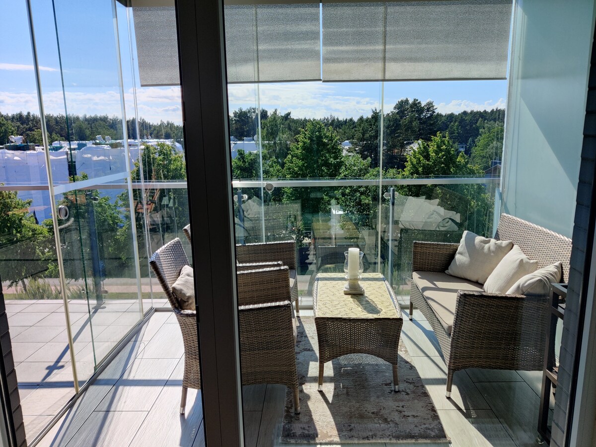 Have fun with the whole family at this stylish place, conveniently arranged 60sq.m.apartment on the second floor with a balcony. Suitable for up to 6 people. To the sea ~600m. Near bicycle path. For your convenience- bed linen, towels, Wifi, a flat-screen tv, Go3, conditioner, washing machine, dishwasher, coffe machine nespresso,kitchen fully equipped, free private car park, baby travel cot available too