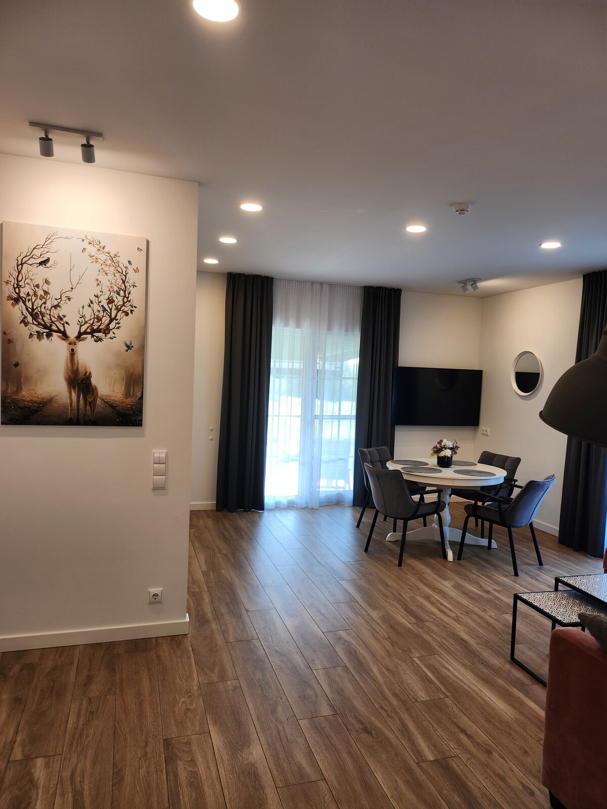 Newly renovated 2 bedroom ground floor bungalow with unfold-able sofa which in total can easily accommodate up to 6 adults. Property has all commodities to offer from WIFI-TV with Go3/Netflix to cutlery, towels, grill, baby cot and fully furnished terrace. Brand new neighbourhood Takas I Jura 2 in Kunigiskes district Palanga. Location is perfect for those looking to relax and to have great time whilst here. 500 metres from the sea, nearby restaurants, shops, beautiful scenery all round.