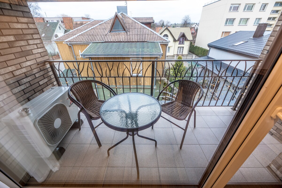 Right in the heart of Palanga comfortable, spacious(42 m2.), very quite, clean and stylish apartments with a balcony just a few minutes by walk from main attractions and activities (beach - 10~15 min., Basanaviciaus str. - 5-10 min., market - 3 min., bakery, shops, cafes, banks - 1 min.). Free parking is available. Our 1 bedroom apartment is perfect for a family or two couples of friends.