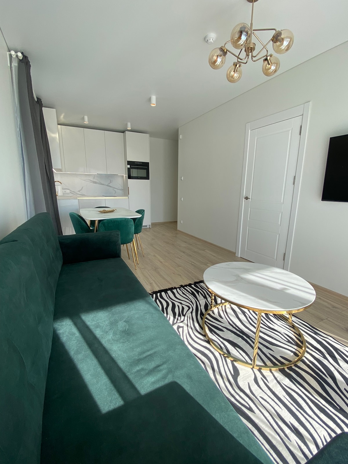 Apartament in "Hill Garden" residence. When furnishing the apartment one of the main considerations we had was to combine functionality and style. The place is ideal both for a couple and a family, with a separate bedroom, and a sofa-bed in the living room that takes just seconds to prepare – we got surprised ourselves how easy it is to fold and unfold. We are looking forward to welcome you in Kunigiskes, and we are convinced you would be eager to come back!
