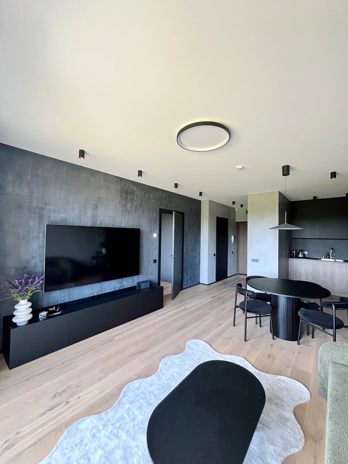 Escape to this charming studio in the Mano Jūra 2 complex, just a 10-minute walk from the Baltic Sea. The modern 28 sq.m space includes a 27 sq.m terrace, perfect for couples or small families with a queen bed and sofa bed. For an extra fee, enjoy a hot tub, jacuzzi, sauna, BBQ grills, pizza oven, electric scooters, and bikes. Located in the quiet Kunigiškiai neighborhood, this studio is near the beach, bike paths, and pine forests. Ideal for a memorable seaside getaway.