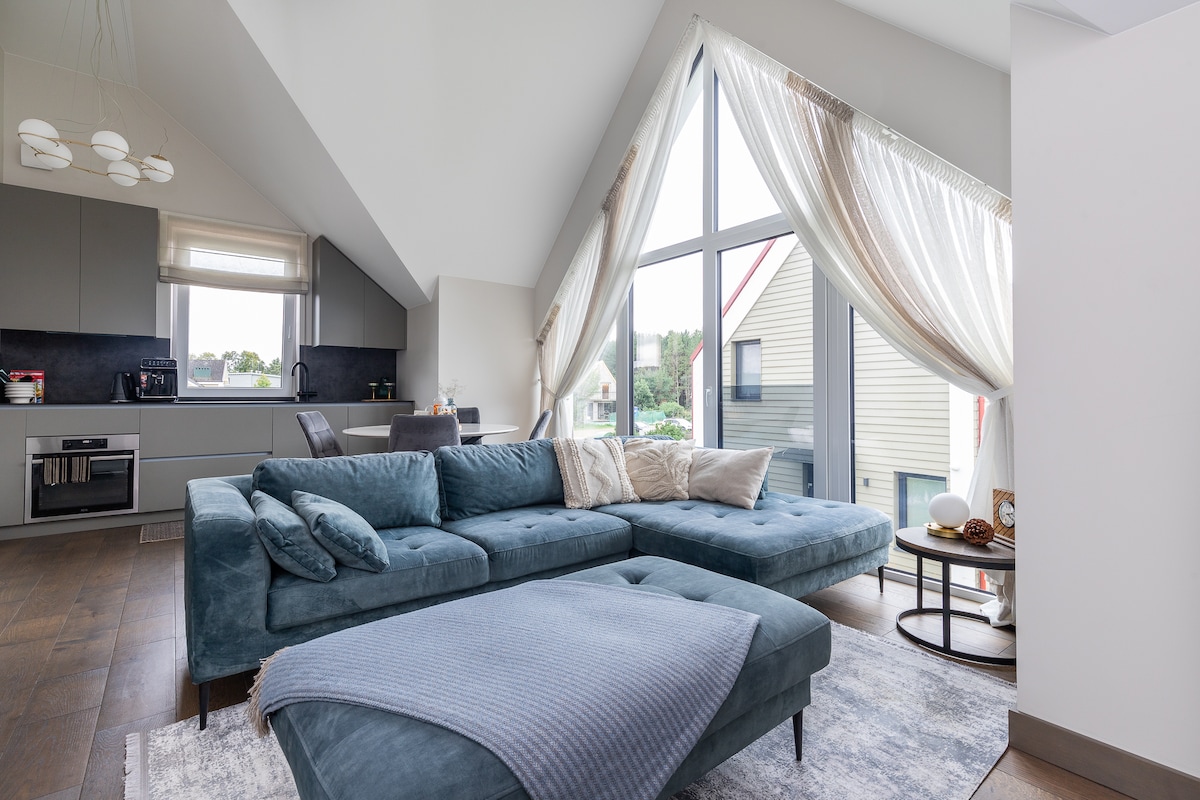 A beautiful penthouse apartment by the sea for couples and friends on the second floor in a building that has only two apartments. A modern and fully equipped apartment with panoramic windows facing West is a great choice for couples or friends to explore the Lithuanian seaside or a perfect spot for a relaxing holiday by the beach. The spacious open-plan living, kitchen and dining area with floor to ceiling windows certainly offers the Wow factor.