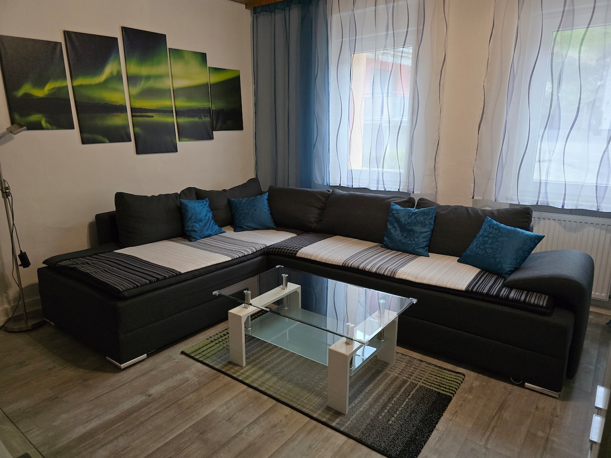 🏡 “Senderblick” – Welcome to a wonderful apartment with a view in a quiet residential area. The neighborhood is perfect. Nature and the city are right on your doorstep. Cozy 60 m² for your exclusive use with a separate entrance and covered terrace, ideal for relaxing outdoors. Whether you're looking for relaxation, a home office, or a stopover while traveling, here you'll find privacy, comfort, and a pleasant atmosphere. Wi-Fi is available throughout the apartment and is free of charge.