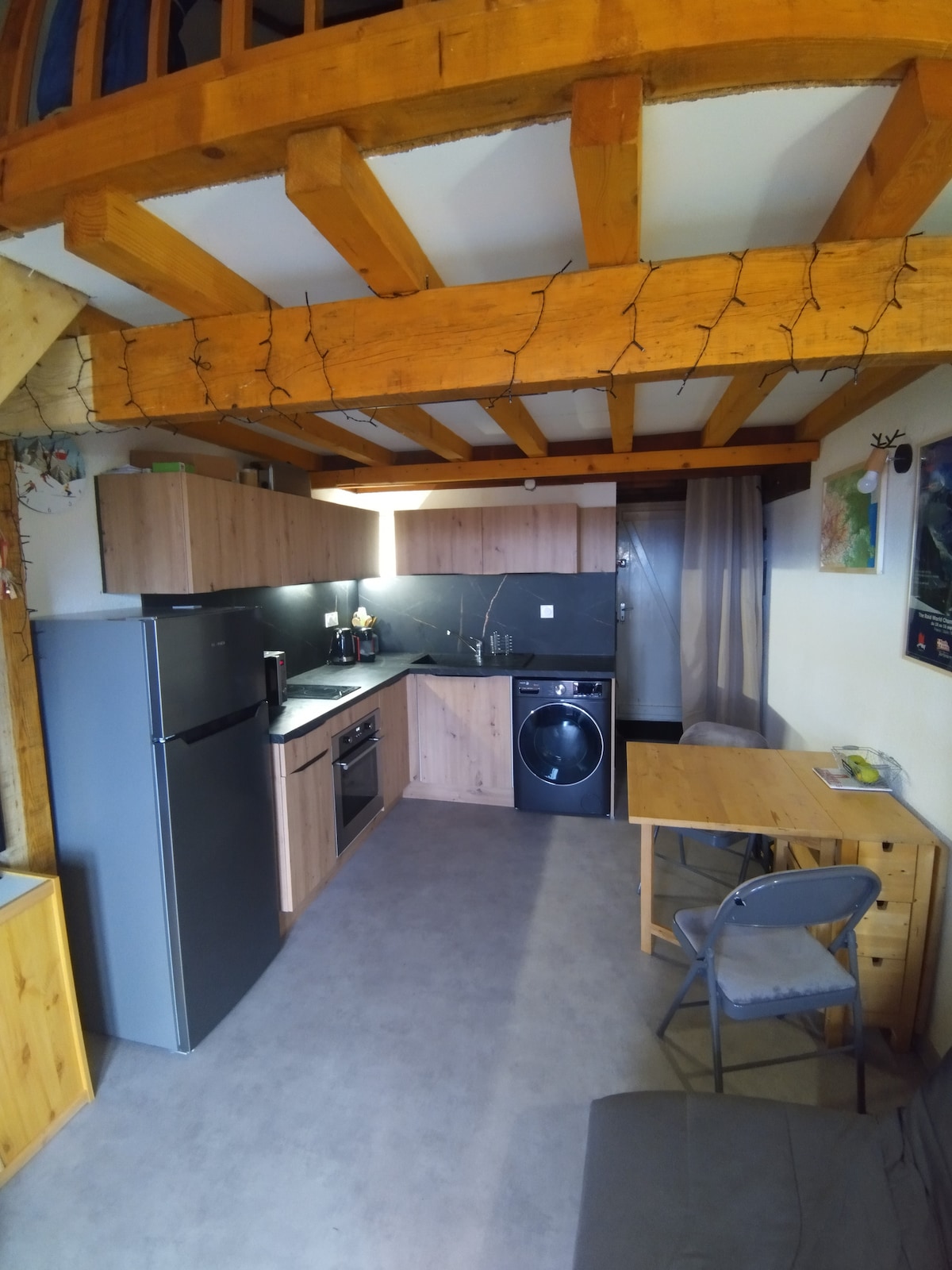 Recién reformado y bien distribuido, cuenta con Wi-Fi, un dormitorio con litera (cama de matrimonio abajo y cama individual arriba), ideal para una pareja o familia pequeña. El salón comedor con cocina abierta totalmente equipada es el rincón perfecto para relajarse tras un día en las pistas. Su balcón con vistas al jardín comunitario permite disfrutar de momentos al aire libre mientras los niños juegan. A minutos pocos de las estaciones de esquí y del tren Amarillo.