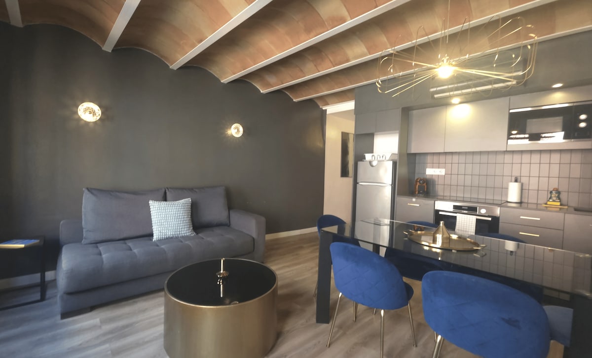 Newly renovated dream accommodation, perfect for travelers looking for a unique experience in the heart of Barcelona.This jewel is a haven of peace in the middle of the urban bustle, with an open kitchen dining room, bedroom and balcony. Moreover, we invite you to enjoy the exceptional views from the common terrace on the seventh floor This category of apartment is located between the 1st and 6th floors. Assignment requests are subject to availability.