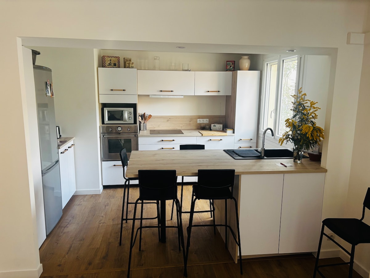 1ère mise en location depuis juin 2024 de notre appartement de 43 m2 composé d’une chambre, une cabine, une salle de bain/ WC, un Séjour/cuisine donnant sur une terrasse de 16m2 avec vue et accès direct sur la plage. Nous l’avons entièrement refait et équipé à neuf et avec soin. Il se trouve en RDC d’une petite copropriété de 4 apparts avec place de parking dans la cour fermée de l’immeuble. Il est doté de la wifi haut débit, le linge de lits et de toilette est fourni
