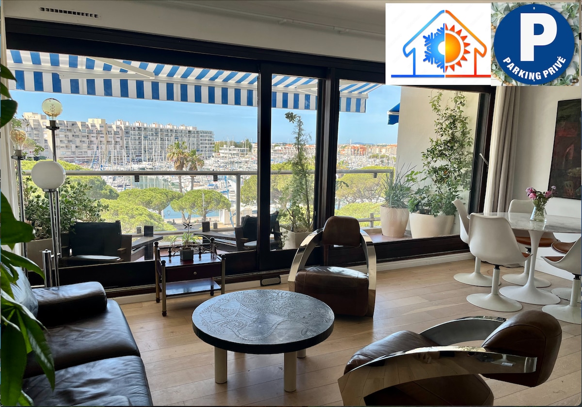 Studio de 26m2 (rénové en avril 2025) + balcon, classé 2*, vue mer exceptionnelle : port et Mont St Clair (Sète). Situé au dernier étage (ascenseur). Situation idéale au cœur de La Grande Motte (tout à pied), à 100m de la plage du centre, des commerces et des restaurants du front de mer. Épicentre pour les accès aux quartiers du point zéro (Thalasso Spa, tennis), du Couchant (par le port et front de mer), du Ponant (ballades en pinède et étang) et du marché (3min à pied). Local à vélos sécurisé.