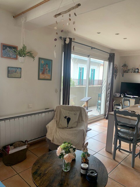 Le logement est climatisé avec wifi, composé d'un grand espace de vie séjour et coin salon avec un BZ matelas très confortable pouvant faire dormir deux personnes 140/190. Une salle de bains. Une chambre qui dispose d'un grand lit 140/190 ,un bureau et une armoire. Un grand placard- penderie à l'entrée. Une cuisine toute équipée. Chaise haute pour bébé et vaisselle bébé. Jouets et jeux à disposition. Il donne sur une terrasse de 9 m2, agréable pour apéro ou plancha .