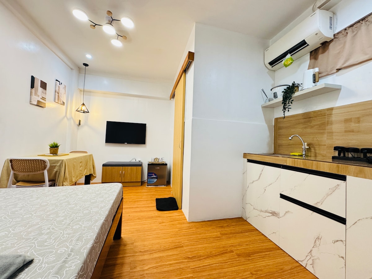 The room is loaded with: - Flatscreen TV (28") with Cable - Smart TV inside BRoom 2 - Free WiFi (80Mbps) - Hot or Cold Shower -Refrigerator -kitchen utensils -Rice Cooker -Induction Cooker -Oven tooster - Electric Kettle with Complimentary Bottled Water and Coffee Packets -2 Bedroom with A/C (split type& window type) & 2Bathroom - Comfortable Queen or Double Bed - Working Area