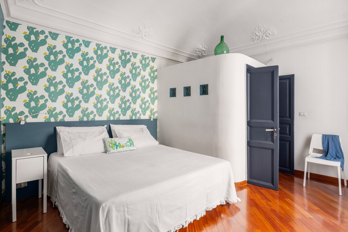Casa storica fine ‘800, con cementine originali dell’epoca, affacciata sulla città e sulla principale via Garibaldi da cui ammirare la Cattedrale di Sant’Agata e la storica Porta Garibaldi (Fortino). Goditi una vacanza all'insegna dello stile in questo spazio in centro, vista Duomo e su Casa Museo di Giovanni Verga, apprezzerete la posizione e la vicinanza al fantastico Teatro Antico e al Castello Ursino, e a tutte le attrazioni della città di Catania!