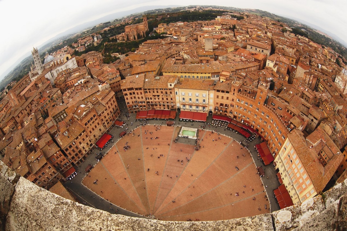 Luminoso ed accogliente appartamento di mq 95 situato al 4º piano senza ascensore di un palazzo notificato nel cuore della città a pochi passi da Piazza del Campo , il Duomo e le maggiori attrazioni della città. Una splendida vista che domina sui tetti farà da cornice al vostro appartamento da cui potrete vedere la Torre del mangia, la Basilica dei Servi e la meravigliosa Val d'Orcia.