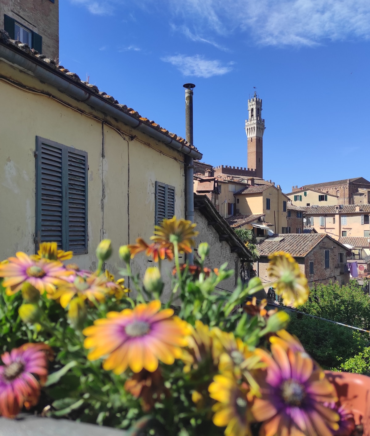 Accogliente appartamento con terrazza con impareggiabile vista sulla Torre del Mangia e Piazza del Campo. L'appartamento è dotato di tre confortevoli camere, di un salotto, un ampio bagno e una cucina completamente attrezzata. Terrazza perfetta per vedere il Palio, come indicato nelle recensioni.